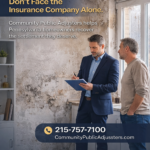 Community Public Adjusters is a public adjuster consulting firm headquartered in Pennsylvania with additional offices throughout New Jersey, and Philadelphia. Our public adjusters do much more than prepare and submit property damage claims. Our public adjusters evaluate the claim on the policyholder’s behalf, sparing you the stress of the insurance claim process and having to deal with the insurance carrier yourself. Our public adjusters have experience working on both residential and commercial insurance claims and will work for you to provide the best possible outcome with your insurance company.