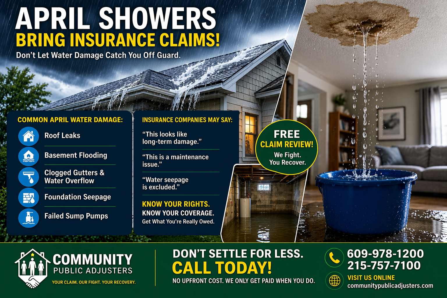 “April showers bring May flowers”… but they can also bring costly property damage if your home isn’t ready. Every spring, homeowners across New Jersey and Pennsylvania see a spike in: Roof leaks Basement flooding Foundation seepage Gutter overflows And unfortunately, many insurance claims ar...